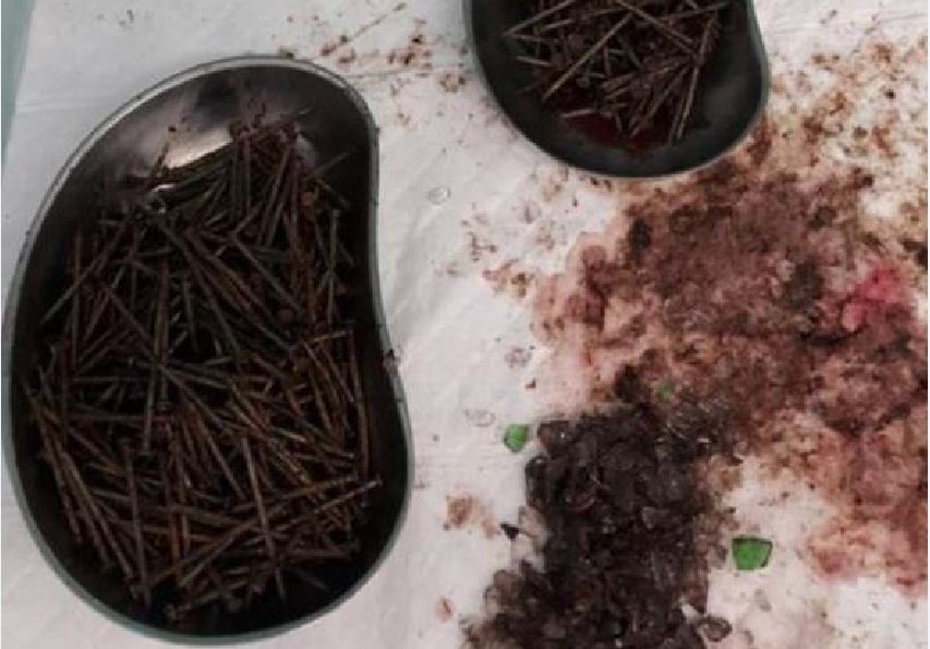 വയറു വേദനയുമായി ആശുപത്രിയിലെത്തിയ ഇയാളെ പരിശോധിച്ചപ്പോൾ വയറിനകത്ത് ആണികളും ചില്ലുകളും ഉള്ളതായി ബോധ്യപ്പെടുകയും തുടർന്ന് ഓപ്പറേഷൻ ചെയ്യുകയുമായിരുന്നു.
