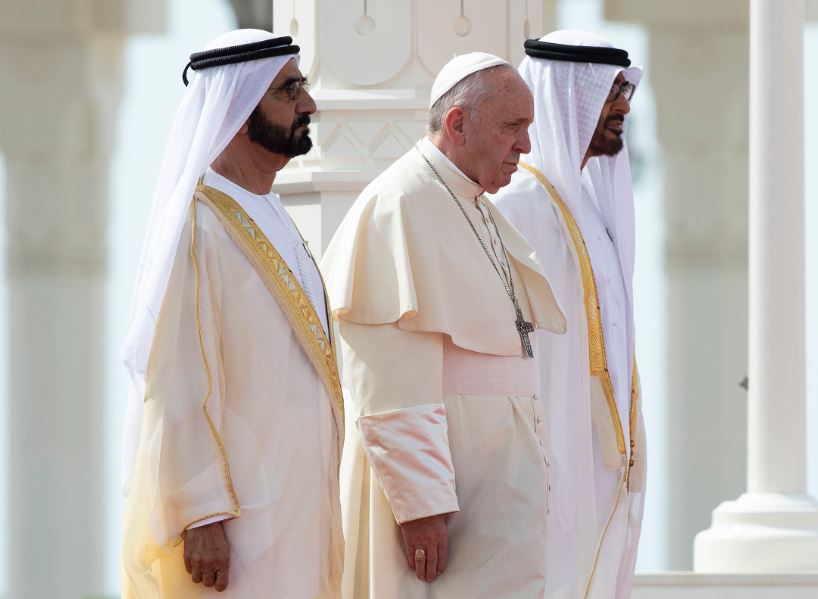 ദുബൈ ഭരണാധികാരി ശൈഖ് മുഹമ്മദ്, അബുദാബി കിരീടാവകാശി മുഹമ്മദ് ബിൻ സായിദ് അൽ നഹ്യാൻ എന്നിവരുമായി മാർപ്പാപ്പ അബുദാബി പ്രസിഡൻഷ്യൽ പാലസിൽ കൂടിക്കാഴ്ച നടത്തി.