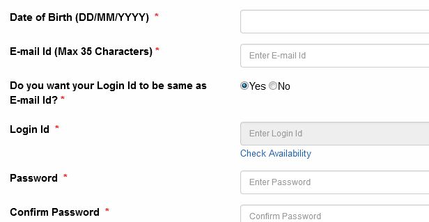 നമ്മുടെ ഇമെയിൽ ഐ ഡി തന്നെ നമുക്ക് പിന്നീട് സൈറ്റിൽ അപേക്ഷകൾക്കായി പ്രവേശനത്തിന് ഉപയോഗിക്കാനുള്ള യുസർ ഐഡി ആയി ഉപയോഗിക്കാം എന്ന് ഓർക്കുക. അതിനു അവിടെ ഓപ്‌ഷൻ കാണാം. ഇമെയിൽ ഐഡി തന്നെ യൂസർ ഐഡി ആയി നിശ്ചയിക്കുന്നതാണ് എപ്പോഴും ഓർത്തിരിക്കാനും മറ്റും നല്ലത്. അത് കൊണ്ട് താഴെ ചിത്രത്തിൽ കാണുന്നത് പോലെ Do you want your Login Id to be same as E-mail Id? എന്ന ഭാഗത്ത് yes എന്നത് ക്ലിക്ക് ചെയ്ത് രെജിസ്ട്രേഷൻ പ്രോസസ് തുടരുക.