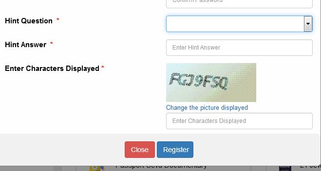 ശേഷം കാണുന്ന ഇമേജ് കോഡ് ടൈപ്പ് ചെയ്ത് രെജിസ്റ്റർ ബട്ടൺ ക്ളിക്ക് ചെയ്യുക. ഉടൻ നാം രെജിസ്റ്റർ ചെയ്ത ഇമെയിൽ ഐഡിയിലേക്ക് ഒരു ആക്ടിവേഷൻ ലിങ്ക് വരികയും ഇമെയിൽ ഇൻബോക്സ് തുറന്ന് അതിൽ ക്ലിക്ക് ചെയ്ത് നമ്മുടെ അപേക്ഷ ഫോം പൂർത്തീകരിക്കുകയും ചെയ്യുക. ശേഷം പൂരിപ്പിച്ച അപേക്ഷയുടെ പ്രിൻ്റൗട്ട് എടുത്ത് ആവശ്യമായ രേഖകളും ഫീസും സഹിതം ഇന്ത്യൻ പാസ്പോർട്ട് സേവനങ്ങൾ നൽകുന്ന വി എഫ് എസ് പോലുള്ള പ്രത്യേക ഏജൻസികളിൽ നേരിട്ട് പോയി സമർപ്പിക്കുകയാണു ചെയ്യേണ്ടത്.