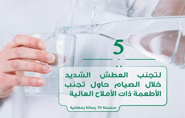 നോമ്പ് കാലത്ത് ഉപ്പിന്റെ അളവ് കൂടുതലുള്ള ഭക്ഷണങ്ങൾ ഒഴിവാക്കണമെന്ന് സൗദി ആരോഗ്യ മന്ത്രാലയം നിർദ്ദേശിച്ചു.