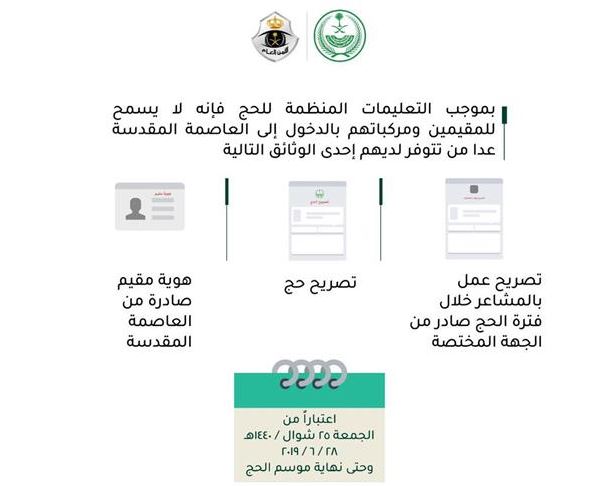 ഹജ്ജിനുള്ള പെർമിഷനോ, മക്കയിൽ ഇഷ്യു ചെയ്ത ഇഖാമയോ, ജവാസാത്തിൻ്റെ അംഗീകാരം ലഭിച്ച മക്കയിൽ തൊഴിലെടുക്കാനുള്ള തൊഴിലുടമ നൽകുന്ന അനുമതി പത്രമോ ഉള്ള വിദേശികളെ മാത്രമേ ഈ കാലയളവിൽ മക്കയിലേക്ക് കടത്തി വിടുകയുള്ളൂ.