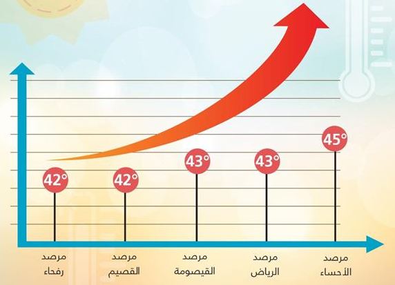 ഏറ്റവും കൂടിയ താപ നില ഇന്നനുഭവപ്പെട്ടത് അൽ അഹ്സയിലായിരുന്നുവെന്ന് കാലാവസ്ഥാ നിരീക്ഷണ വകുപ്പ് അറിയിച്ചു. 45 ഡിഗ്രിയായിരുന്നു അൽ അഹ്സയിലെ ഇന്നത്തെ താപ നില.