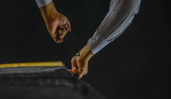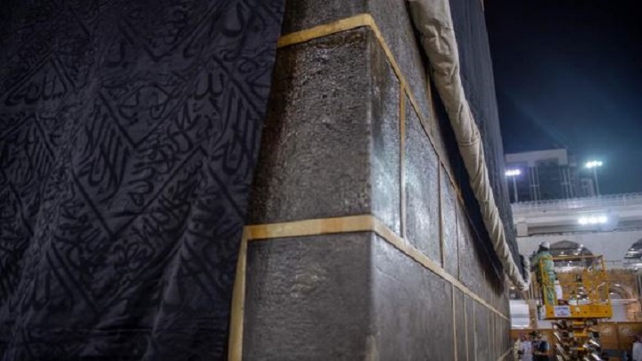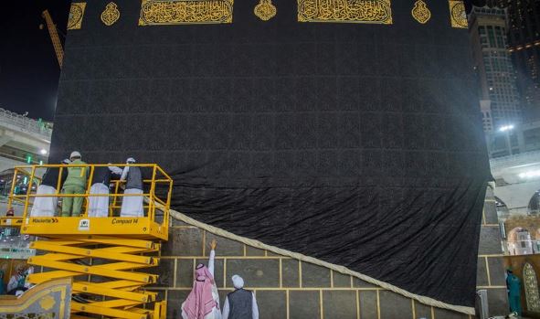 കഅബയുടെ കിസ്വ താഴ്ത്തുകയും ഗോൾഡൻ റിങ്ങുകളിൽ ഉറപ്പിക്കുകയും ചെയ്തു; ചിത്രങ്ങൾ കാണാം