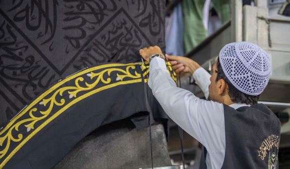 ഗോൾഡൻ റിങ്ങുകളിൽ ഉറപ്പിക്കുന്നതിന് പുറമെ കിസ്വയുടെ ഭാഗങ്ങൾ തുന്നി യോജിപ്പിക്കുകയും ചെയ്തു.