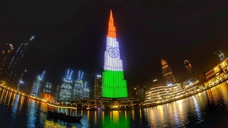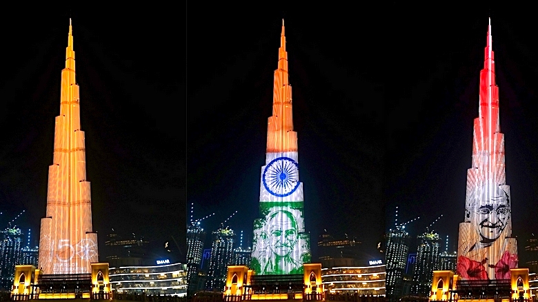 ലോകത്തിലെ ഏറ്റവും ഉയരം കൂടിയ കെട്ടിടമായ ദുബായ് ബുർജ് ഖലീഫയിൽ ഇന്ന് രാത്രി ത്രിവർണ പതാകയോടൊപ്പം ഗാന്ധിജിയുടെ ചിത്രം പ്രദര്ശിപ്പിക്കുമെന്ന് നേരത്തെ ഇന്ത്യൻ കോൺസുലേറ്റ് അറിയിച്ചിരുന്നു.