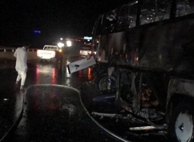 റിയാദിൽ നിന്ന് ഉംറ തീർത്ഥാടകരുമായി എത്തിയ ബസ് മദീനയിൽ നിന്ന് മക്കയിലേക്കുള്ള വഴിയിൽ ഒരു ഷവലുമായി കൂട്ടിയിടിച്ചായിരുന്നു അപകടം സംഭവിച്ചത്.