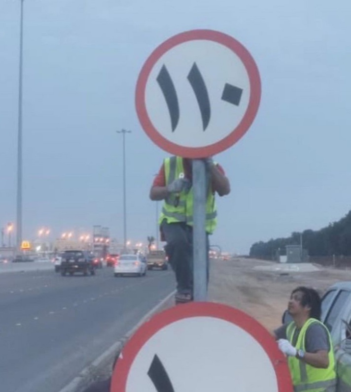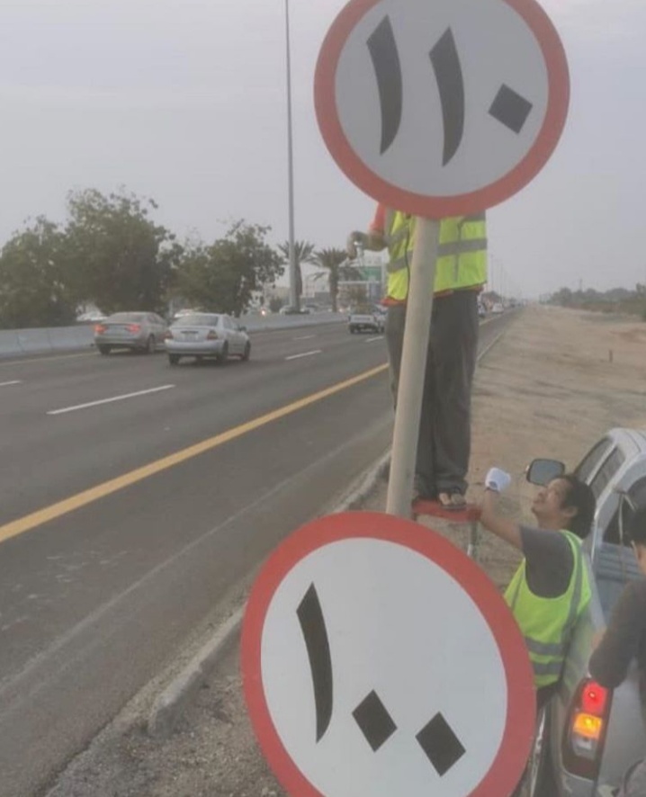പഴയ വേഗത പരിധി ബോഡ് നീക്കം ചെയ്തു പുതിയ ബോഡ് സ്ഥാപിക്കുന്ന ചിത്രം സോഷ്യൽ മീഡിയയിൽ പങ്ക് വെക്കപ്പെട്ടു.