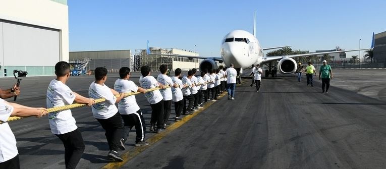 ദുബൈ: ഫ്ളൈ ദുബായിയുടെ 737 Boeing aircraft ദുബൈ പോലീസ് സ്കൂളിലെ വിദ്യാർത്ഥികൾ കെട്ടി വലിച്ചത് മാധ്യമ ശ്രദ്ധ നേടി.