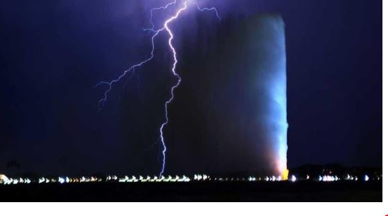 ജിദ്ദയിലെ കിംഗ് ഫഹദ് വട്ടർ ഫൗണ്ടയ്ന് സമീപം ഇടി മിന്നൽ പ്രത്യക്ഷപ്പെട്ടപ്പോൾ പകർത്തപ്പെട്ട ചിത്രങ്ങൾ സോഷ്യൽ മീഡിയകളിൽ വൈറലാകുന്നു.