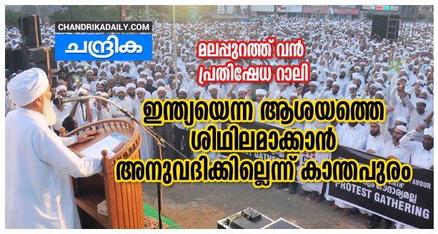 പൗരത്വ നിയമ ഭേദഗതി; കാന്തപുരം വിഭാഗത്തിന്റെ പ്രതിഷേധ സമ്മേളനം സുപ്രഭാതവും ചന്ദ്രികയും പ്രാധാന്യത്തോടെ റിപ്പോർട്ട് ചെയ്തത് ശ്രദ്ധേയമായി