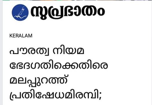 ”പൗരത്വ നിയമ ഭേദഗതിക്കെതിരെ മലപ്പുറത്ത് പ്രതിഷേധമിരമ്പി; ഇന്ത്യയെന്ന ആശയത്തെ ശിഥിലമാക്കാന്‍ അനുവദിക്കില്ലെന്ന് കാന്തപുരം” എന്ന തലക്കെട്ടോടെയായിരുന്നു സുപ്രഭാതം ഓൺലൈൻ പോർട്ടൽ റിപ്പോർട്ട് ചെയ്തത്.