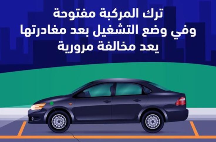 വാഹനങ്ങൾ തുറന്ന രീതിയിലും ഓഫ് ആക്കാതെയും പുറത്തിറങ്ങുന്നത് 100 റിയാൽ മുതൽ 150 റിയാൽ വരെ പിഴ ലഭിക്കുന്ന നിയമ ലംഘനമാണ്.