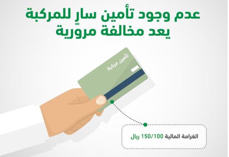 സാധുവായ ഇൻഷൂറൻസ് ഇല്ലാത്ത വാഹനങ്ങൾക്ക് 100 റിയാൽ മുതൽ 150 റിയാൽ വരെയായിരിക്കും പിഴ ചുമത്തുക.