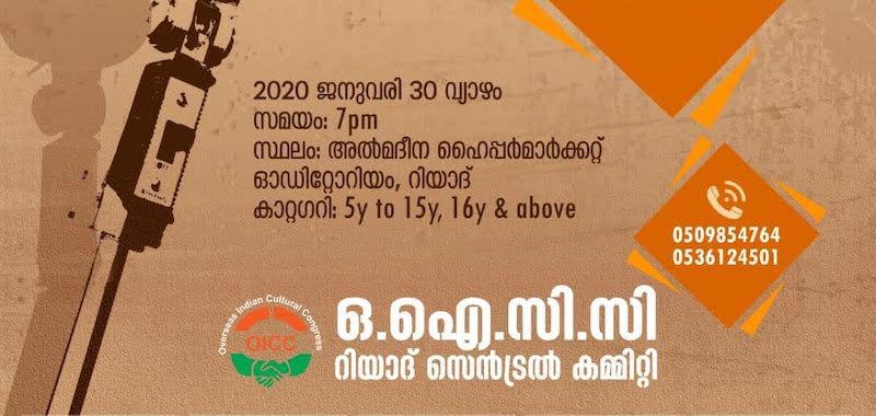 ഓ.ഐ.സി.സി. റിയാദ് വാര്‍ഷികാഘോഷങ്ങളുടെ ഭാഗമായി മാപ്പിളപ്പാട്ട് മത്സരം സംഘടിപ്പിക്കുന്നു