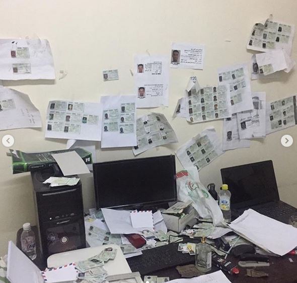 വ്യാജ ഇഖാമകളും മറ്റു വ്യാജ രേഖകളും ഉണ്ടാക്കുന്നതിനു ഉപയോഗിക്കുന്ന മെഷീനുകളും മറ്റുമായാണു നിർമ്മാണത്തിനായി സജ്ജമാക്കിയ സ്ഥലത്ത് വെച്ച് ഇവരെ പിടിച്ചത്.