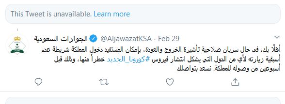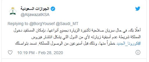 കഴിഞ്ഞ 14 ദിവസങ്ങൾക്കുള്ളിൽ കൊറോണ വൈറസ് രൂക്ഷമായി വ്യാപിച്ചിരിക്കുന്ന രാജ്യങ്ങളിൽ പ്രവേശിച്ചവരായിരിക്കരുത് റി എൻട്രിയിലും വിസിറ്റിംഗ് വിസയിലും സൗദിയിലേക്ക് എത്തുന്ന വിദേശികൾ എന്നതാണു നിബന്ധന.