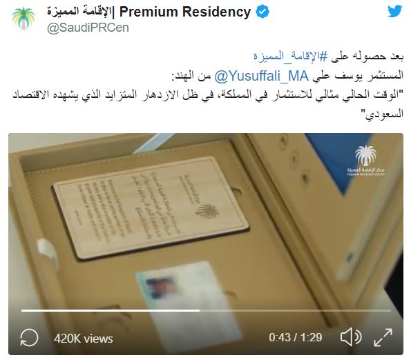 സൗദി വിഷൻ 2030 ൻ്റെ പശ്ചാത്തലത്തിൽ രാജ്യത്ത് നടപ്പിലാകുന്ന വൻ മാറ്റങ്ങൾ ലോക വ്യവസായികൾ ഏറെ ആകാക്ഷയോടെയാണു നോക്കിക്കാണുന്നത് എന്ന് പറഞ്ഞ യുസുഫ് അലി സ്പെഷ്യൽ ഇഖാമ ലഭിച്ചതിൽ ഏറെ സന്തോഷം പ്രകടിപ്പിച്ചു.