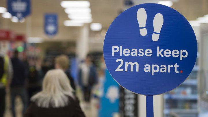 ജീവനക്കാർക്കിടയിലും കസ്റ്റമർ സർവീസ് ഓഫീസുകൾ പോലുള്ള തിരക്കേറിയ ജോലിസ്ഥലങ്ങളിൽ ജീവനക്കാർക്കും ഉപഭോക്താക്കൾക്കുമിടയിലുള്ള ദൂരം നിർണയിക്കുന്ന ഫ്ലോർ സ്റ്റിക്കറുകൾ സ്ഥാപിക്കേണ്ടത് നിർബന്ധമാണ്. ഒൻപത് ചതുരശ്ര മീറ്ററിൽ ഒരാൾ എന്ന കണക്കിനാണ് ഓരോ ഷോപ്പുകളിലും വ്യക്തികൾക്കുള്ള സ്ഥലങ്ങൾ നിർണയിക്കുന്നത്.