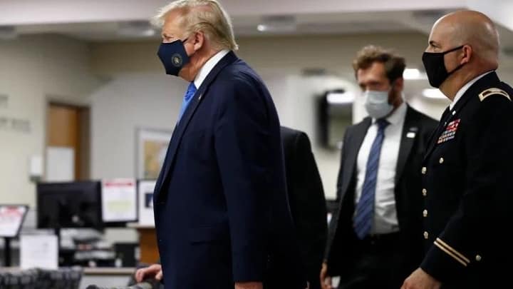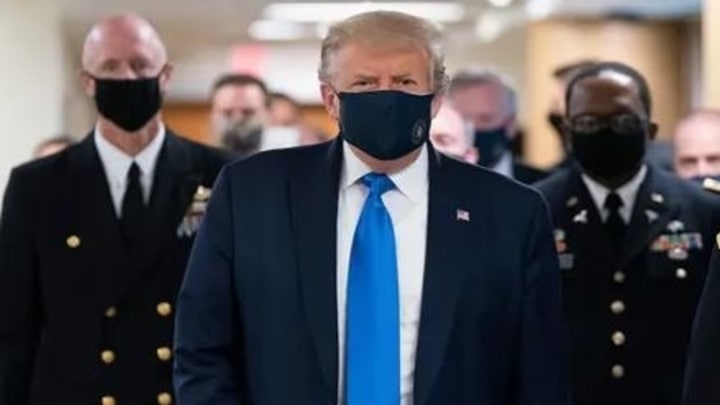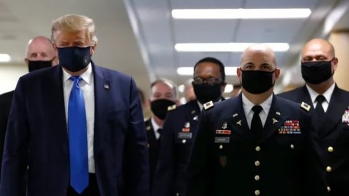 വാൾട്ടർ റീഡ് മിലിറ്ററി ഹോസ്പിറ്റലിൽ പരിക്കേറ്റ സൈനികരെ സന്ദർശിക്കാനായി എത്തിയ സന്ദർഭത്തിലായിരുന്നു പ്രസിഡൻ്റ് ട്രംപ് കറുത്ത മാസ്ക്ക് അണിഞ്ഞത്.