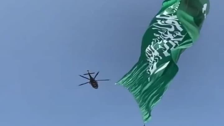 സൗദി ദേശീയ ദിനത്തോടനുബന്ധിച്ച് ഭീമൻ പതാകയും വഹിച്ച് ഹെലികോപ്റ്റർ ; വീഡിയോ വൈറലാകുന്നു