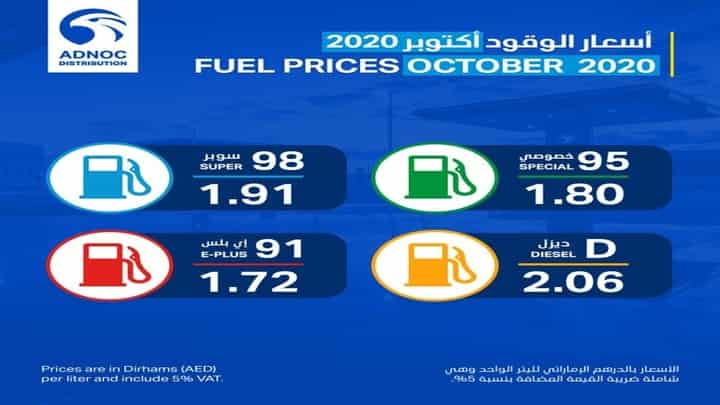 അഡ്നോക് പെട്രോളിയം കമ്പനി തങ്ങളുടെ ഒഫീഷ്യൽ ട്വീറ്റ് മുഖേനയാണ് ഒക്ടോബർ മാസത്തിലെ വില പുറത്തുവിട്ടത്.