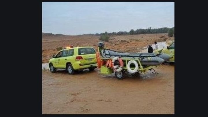 കഴിഞ്ഞ ദിവസം വൈകുന്നേരമാണു ഹായിലിൻ്റെ തെക്ക് ഭാഗത്തുള്ള ശുഐബ് മദറിൽ കാൽ നടയായി പോകുന്നതിനിടെ വെള്ളപ്പാച്ചിലിൽ പെട്ട് യുവാവ് ഒലിച്ച് പോയ വിവരം അധികൃതർക്ക് ലഭിക്കുന്നത്.