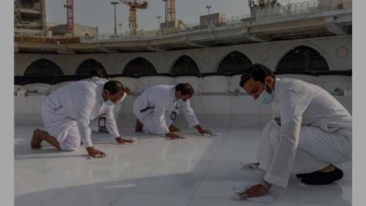 വിശുദ്ധ കഅബയുടെ ഉപരിതലം സൗദി സ്പെഷ്യൽ ടീം 40 മിനുട്ട് കൊണ്ട് വൃത്തിയാക്കി