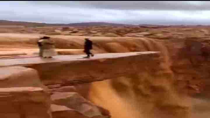 സൗദിയിൽ മഴ മൂലം രൂപപ്പെട്ട ശക്തമായ വെള്ളച്ചാട്ടത്തിന്റെ വീഡിയോ വൈറലാകുന്നു