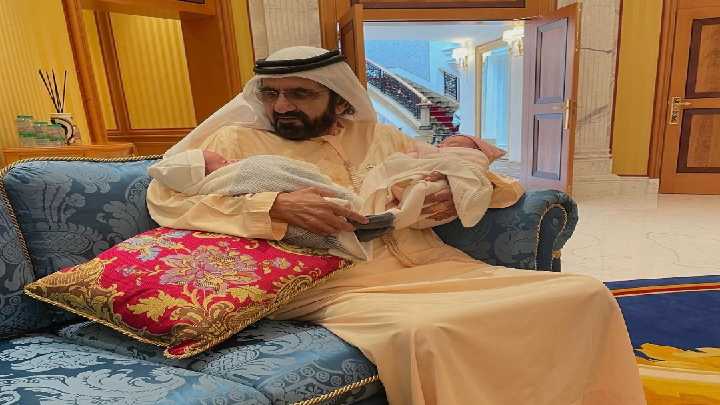 മകൻ്റെ ഇരട്ടക്കുട്ടികളുമായി ദുബൈ ഭരണാധികാരി ; വൈറലായി ചിത്രം