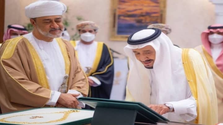 സൗദി ഒമാൻ ഏകോപന സമിതി രൂപീകരിക്കുന്നതുമായി ബന്ധപ്പെട്ട ധാരണാ പത്രത്തിൽ ഒപ്പിടുന്നതിനു ഇരു രാഷ്ട്ര നേതാക്കളും സാക്ഷ്യം വഹിച്ചു.