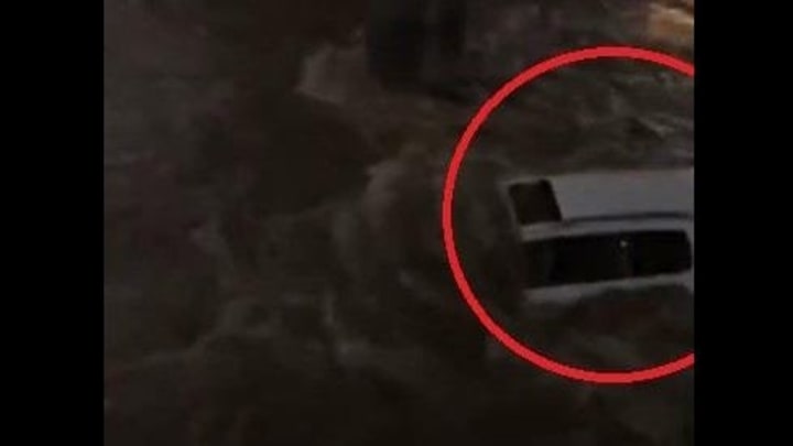 കാർ വെള്ളത്തിൽ കുടുങ്ങിയ വീഡിയോ കാണാം.