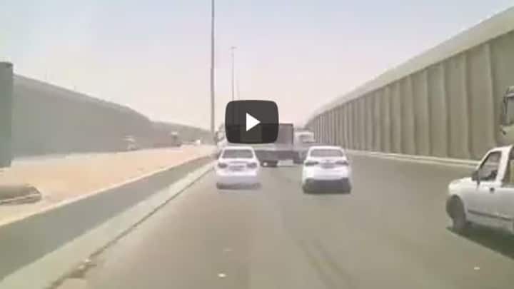 ട്രക്ക് റോഡിൽ കുറുകെ നിൽക്കുന്നതും ഒരു കാർ പിറകെ വന്ന് ട്രക്കിലിടിക്കുന്നതും കാണാൻ സാധിക്കുന്ന വീഡിയോ സോഷ്യൽ മീഡിയകളിൽ പ്രസിദ്ധീകരിക്കപ്പെട്ടു. വീഡിയോ കാണാം.