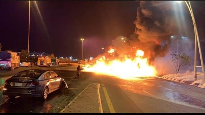 ഒരു ആക്സിഡൻ്റിനു പിറകെയായിരുന്നു ടാങ്കറിനു തീപ്പിടിച്ചതെന്ന് സൗദി ഓൺലൈൻ മീഡിയകൾ റിപ്പോർട്ട് ചെയ്യുന്നു.