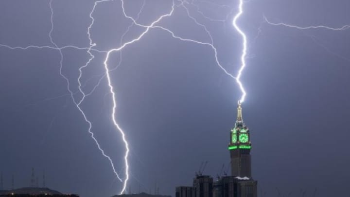 മക്കയിലെ ക്ളോക്ക് ടവറിൽ ഇടി മിന്നൽ പതിക്കുന്ന ദൃശ്യം വൈറലാകുന്നു; വീഡിയോ കാണാം
