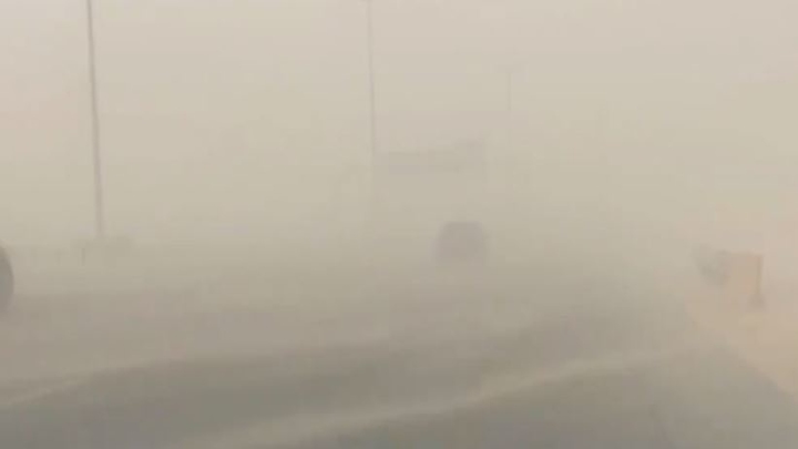 പൊടിക്കാറ്റിൻ്റെ ആധിക്യം കാരണം റോഡിൽ മുന്നോട്ടുള്ള കാഴ്ചകൾ തന്നെ മങ്ങിയതായി അൽ ഇഖ്ബാരിയ പുറത്ത് വിട്ട വീഡിയോ വ്യക്തമാക്കുന്നു.