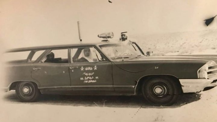1960 കളിലെ ദമാം പോലീസിൻ്റെ ഭാഗമായുള്ള കാറാണിതെന്ന് മൻസൂർ വ്യക്തമാക്കുന്നു. ഫോർഡ് കംബനിയുടേതാണു കാർ.