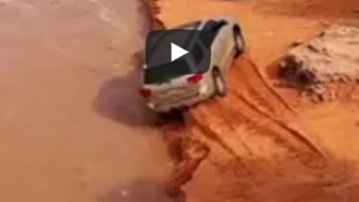 ഖസീമിലെ വാദി സഹ്ലിൽ കുത്തിയൊലിക്കുന്ന വെള്ളത്തിലേക്ക് കാറുമായി വീഴുമായിരുന്ന സൗദി പൗരനെ മറ്റു സൗദികൾ രക്ഷിക്കുന്ന വീഡിയോ വൈറലാകുന്നു.