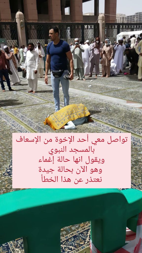 സുജൂദിലായിരിക്കെ ബോധം നഷ്ടപ്പെട്ട പ്രസ്തുത വ്യക്തിയെ ഇതിനകം റെഡ് ക്രസന്റ് വളണ്ടിയർമാർ ആ ആശുപത്രിയിലെത്തിച്ചിട്ടുണ്ടെന്ന് പുതിയ ട്വീറ്റുകൾ സൂചിപ്പിക്കുന്നു.