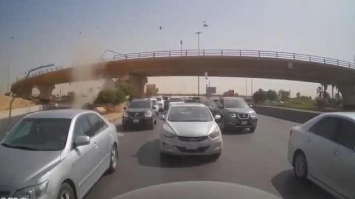 റിയാദിൽ പാലത്തിൽ നിന്ന് കാർ റോഡിലേക്ക് തെറിച്ച് വീണു;വീഡിയോ കാണാം