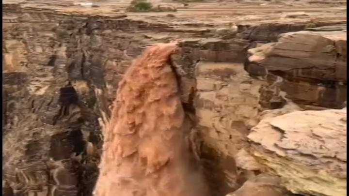 ജിസാനിൽ രൂപപ്പെട്ട ശക്തമായ വെള്ളച്ചാട്ടം കാണാം.