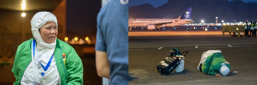 മദീന എയർപോർട്ടിലെത്തിയ ഇന്തൊനേഷ്യൻ തീർഥാടകയാണ് സന്തോഷാധിക്യത്താൽ വിമാനമിറങ്ങിയയുടൻ റൺ വേക്ക് സമീപം സുജൂദ് ചെയ്തത്.