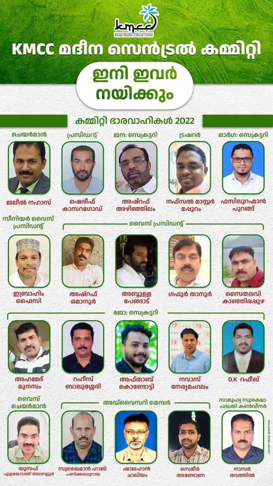 മദീന കെ.എം.സി.സി സെൻട്രൽ കമ്മിറ്റിക്ക് പുതിയ നേതൃത്വം