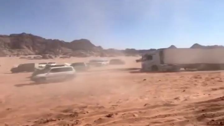 തബൂക്കിനടുത്ത് മരുഭൂമിയിൽ ട്രക്കുമായി പെട്ട് പോയ ജോർദ്ദാനി ഡ്രൈവറെ സൗദി റെസ്ക്യൂ ടീം രക്ഷിക്കുന്ന വീഡിയോ സോഷ്യൽ മീഡിയയിൽ വൈറലായിക്കഴിഞ്ഞു.