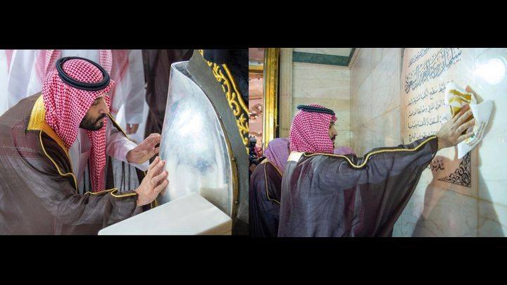 മുഹമ്മദ് ബിൻ സൽമാൻ രാജകുമാരൻ കഅബ കഴുകുന്നതിന്റെയും കഅബക്കുള്ളിൽ നമസ്ക്കരിക്കുന്നതിന്റെയും വീഡിയോ കാണാം.