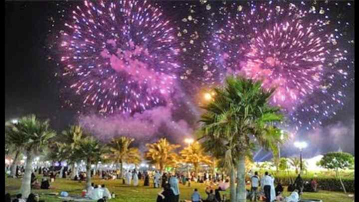 സൗദിയിലെ 18 നഗരങ്ങളിൽ വെള്ളിയാഴ്ച രാത്രി 9 മണിക്കാണ് കണ്ണഞ്ചിപ്പിക്കുന്ന കരിമരുന്ന് പ്രയോഗം നടക്കുക.