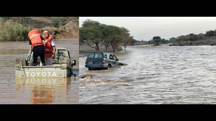 വെള്ളപ്പൊക്കത്തിൽ വാഹനവുമായി കുടുങ്ങിയയാളെ സൗദി സിവിൽ ഡിഫൻസ് രക്ഷപ്പെടുത്തി; താഴ് വര മുറിച്ച് കടക്കാൻ ശ്രമിച്ച സൗദി പൗരൻ അറസ്റ്റിൽ