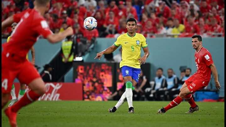 വിനീഷ്യസ് ജൂനിയർ നല്കിയ സൂപർ പാസ് ഗോൾ പോസ്റ്റിന്റെ മൂലയിലേക്ക് കസേമിറോ പായിച്ചപ്പോൾ സ്വിസ് ഗോളിക്ക് നിസഹായനായി നോക്കി നിൽക്കാനെ കഴിഞ്ഞുള്ളൂ.