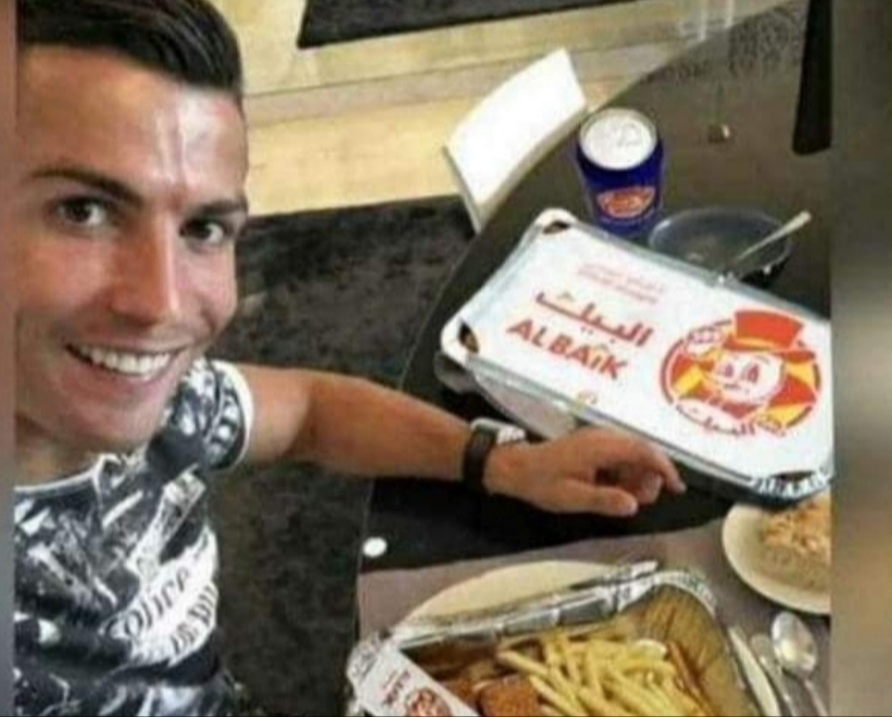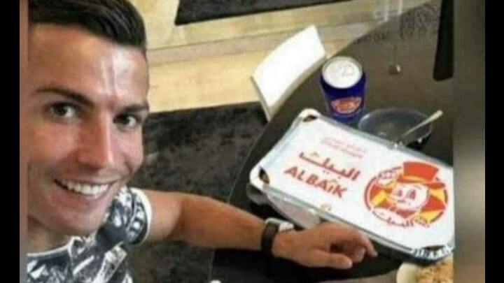 റിയാദിലെത്തിയ ക്രിസ്റ്റ്യാനോ റോണാാൾഡോ പ്രശസ്ത സൗദി ഫാസ്റ്റ് ഫുഡ്‌ ആയ അൽബൈക്കുമായി ഇരിക്കുന്ന ഒരു ചിത്രം സോഷ്യൽ മീഡിയകളിൽ വ്യാപകമായി പ്രചരിക്കുന്നുണ്ട്.
