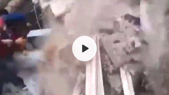 രക്ഷാ പ്രവർത്തകരുടെ മേൽ കെട്ടിടം തകർന്ന് വീഴുന്ന വീഡിയോ കാണാം.